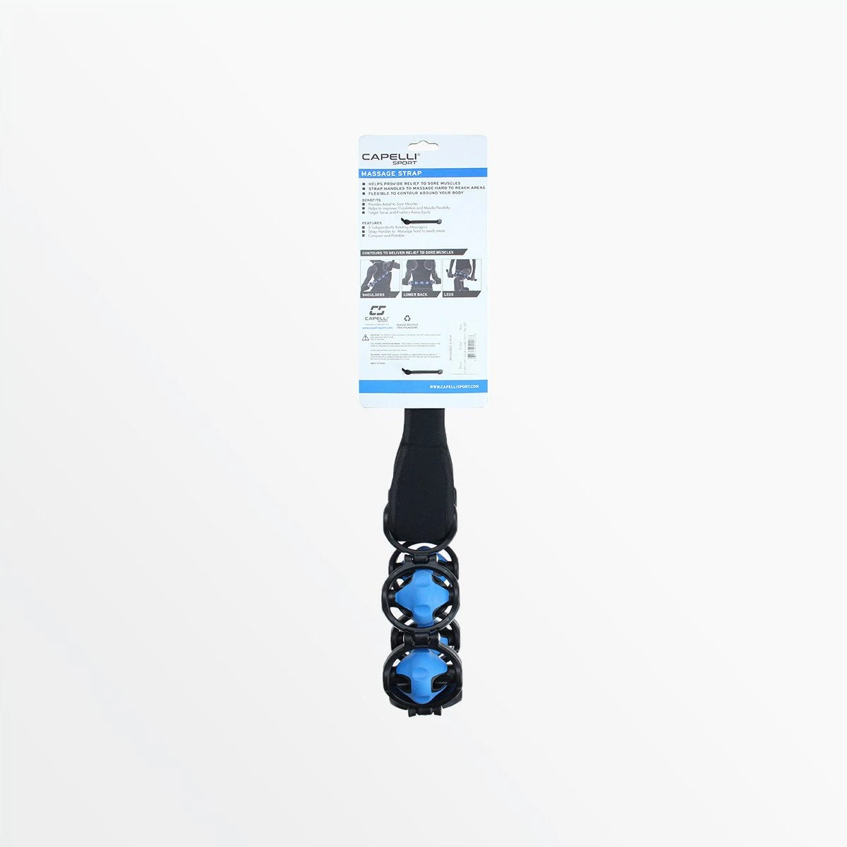 The Capelli Sport Massage Strap helps to alleviate pain in hard to reach places with five independently rotating massage balls. The lightweight and portability of the massage strap allow you to bring comfort and relief on the go.ย